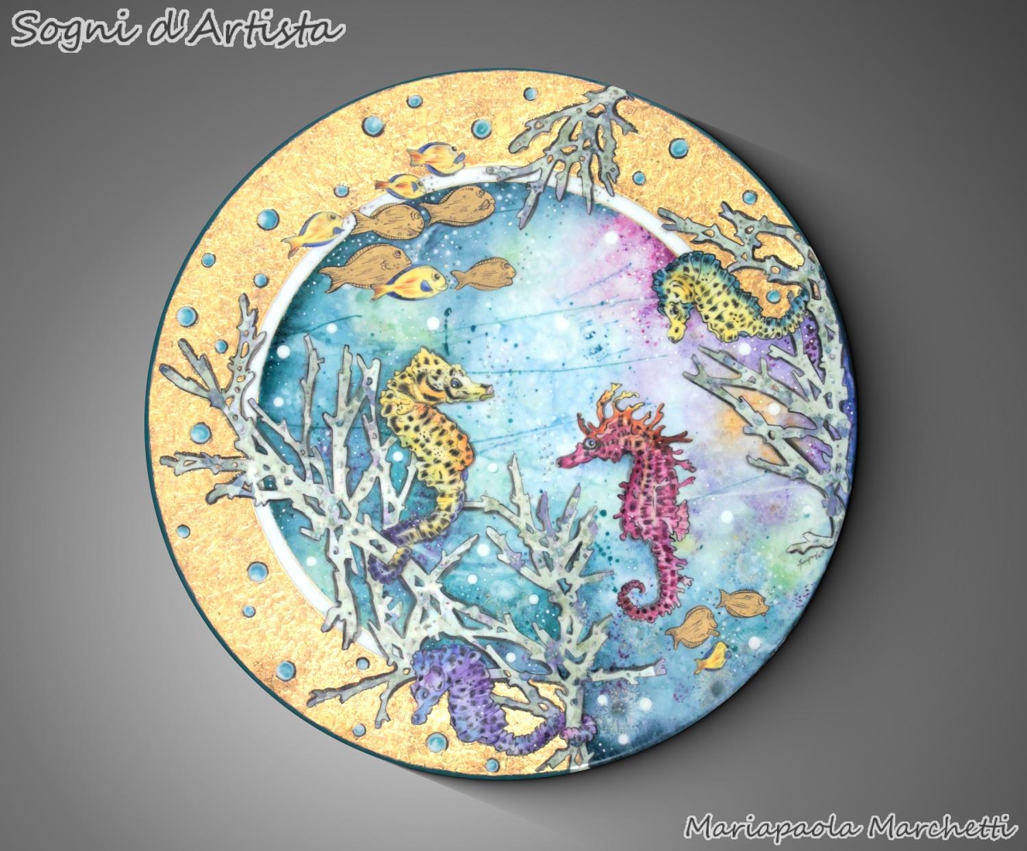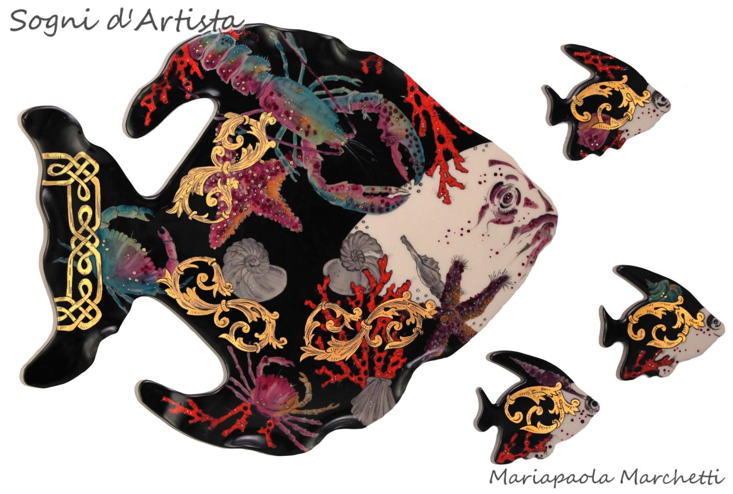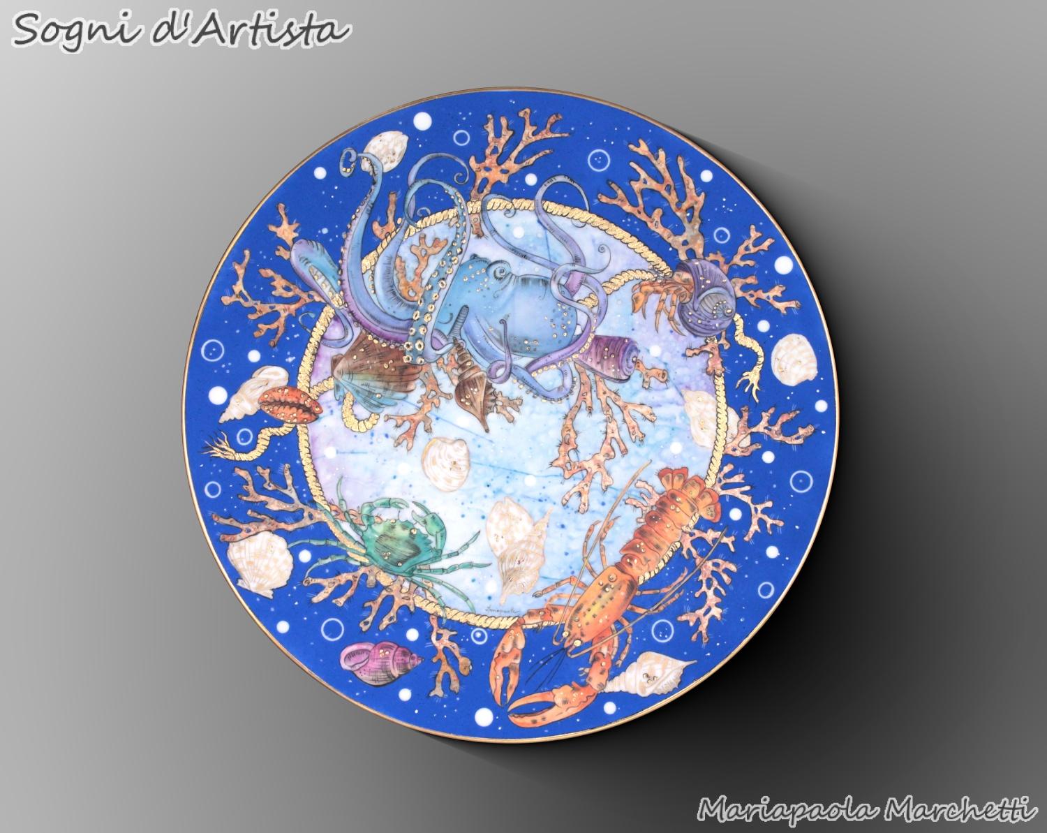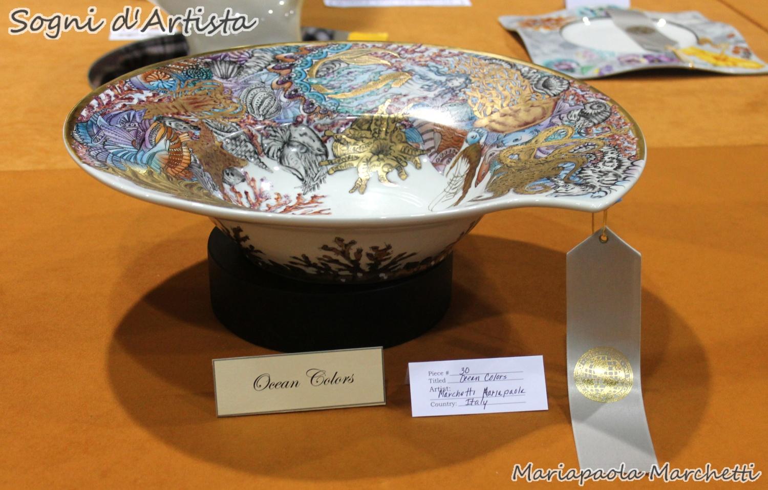 This is Mariapaola's masterpiece. The work shows a musical instrument that goes in a spiral along a big vase. The instrument is decorated with many sea-related images (seashells, mermaids, and so on). This work symbolizes the link between music and the sea.