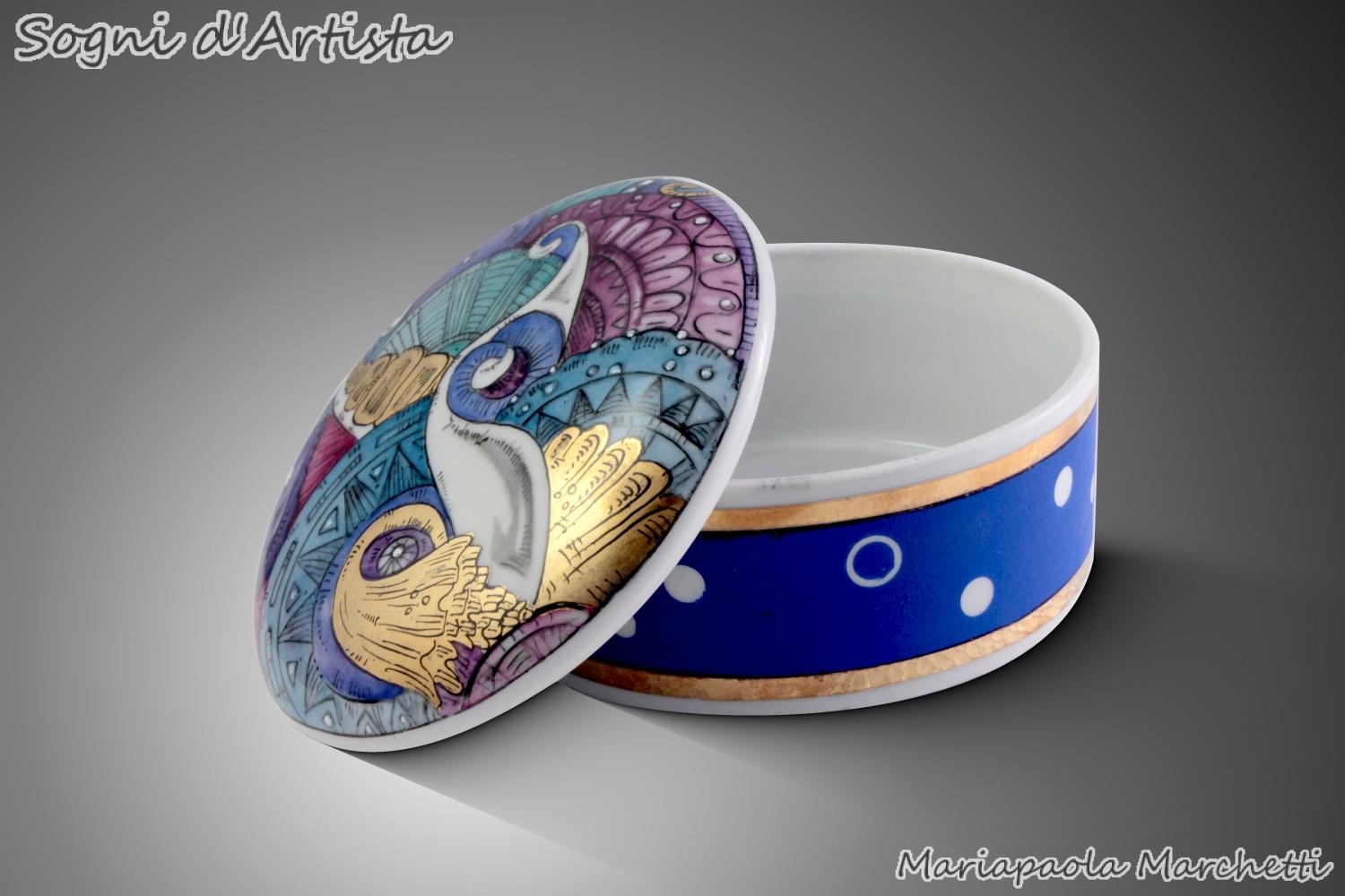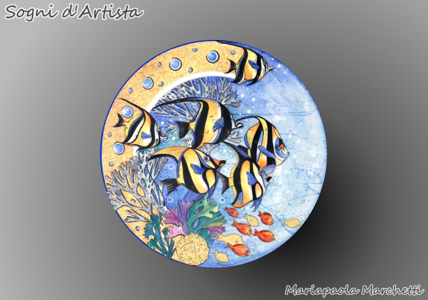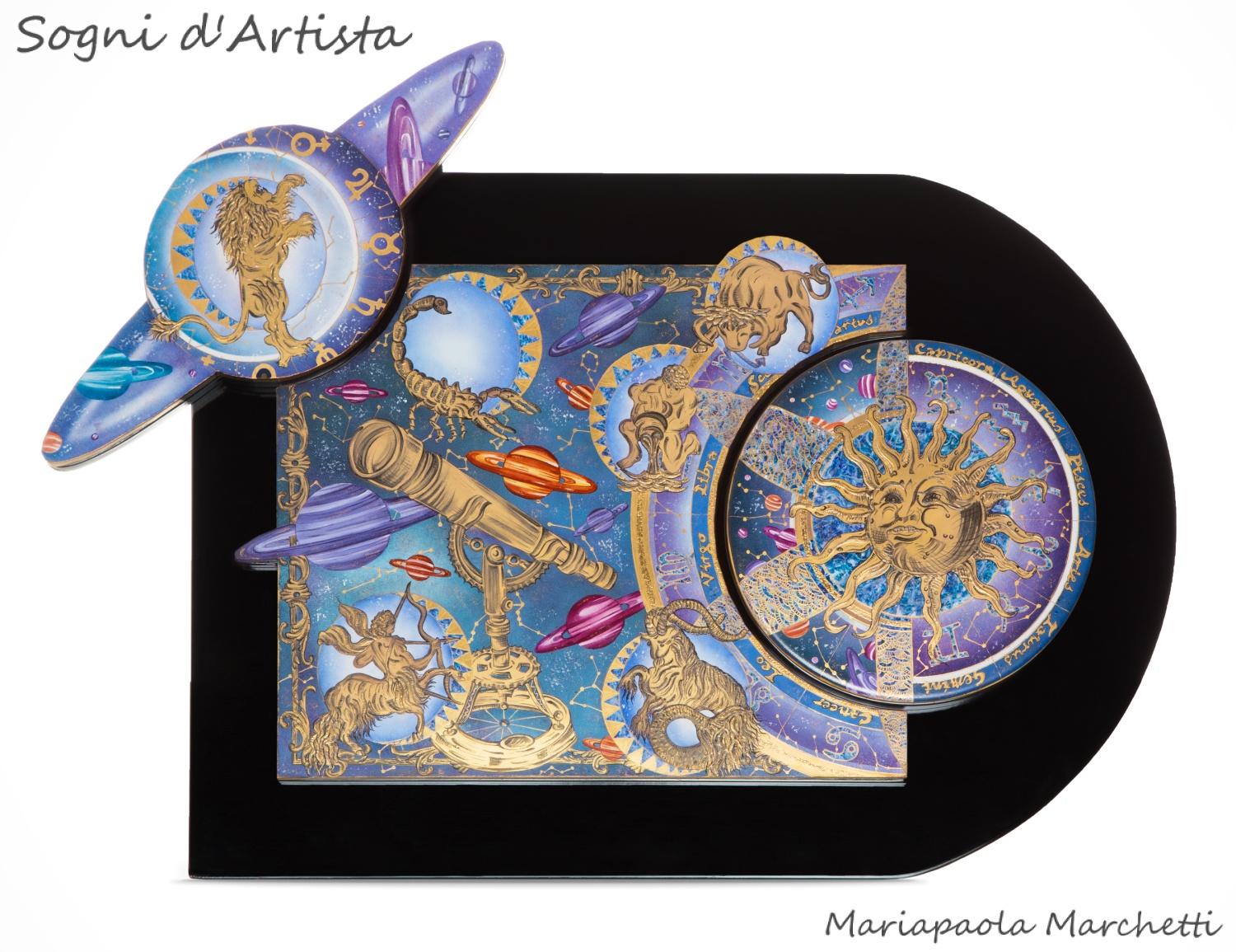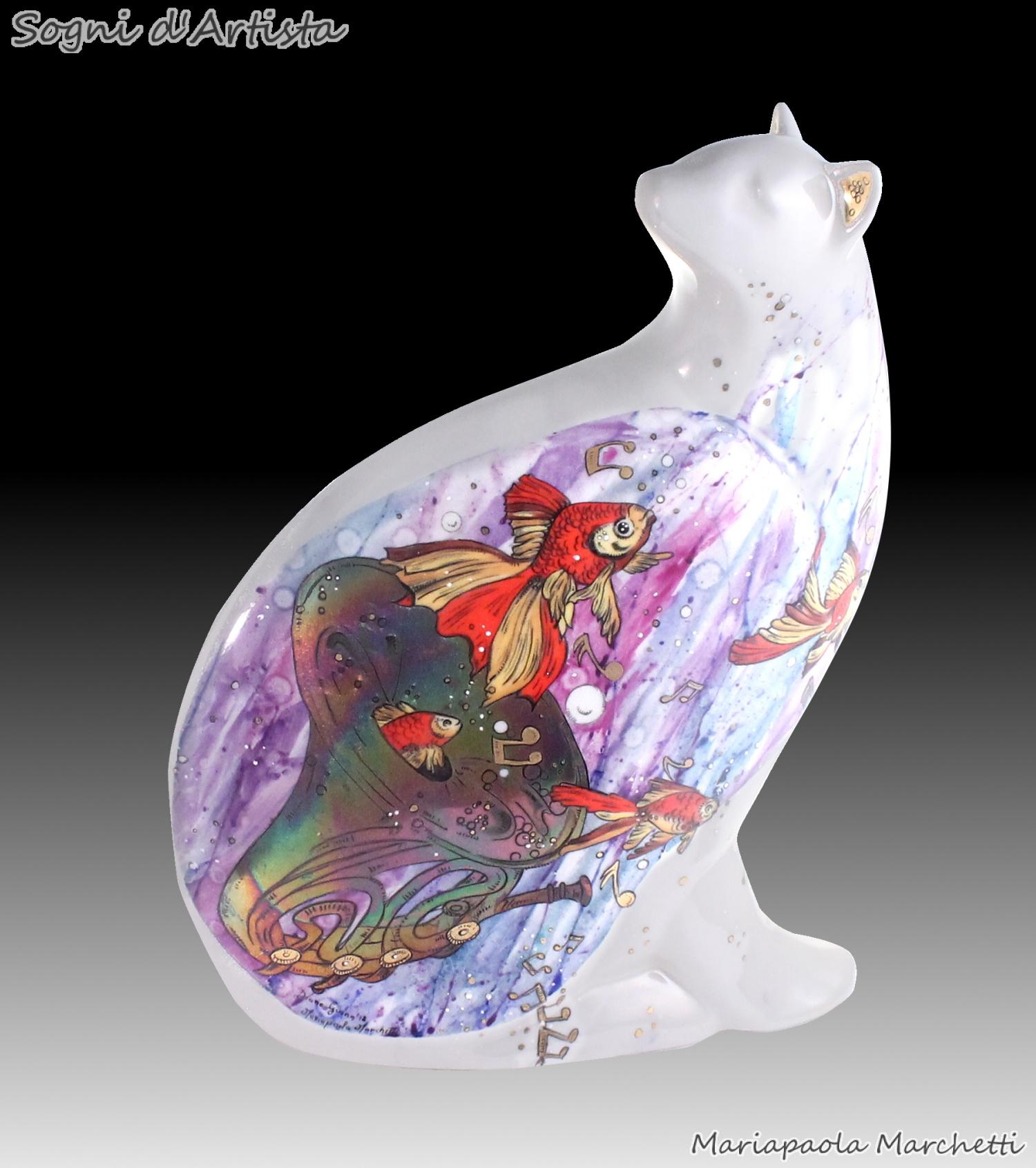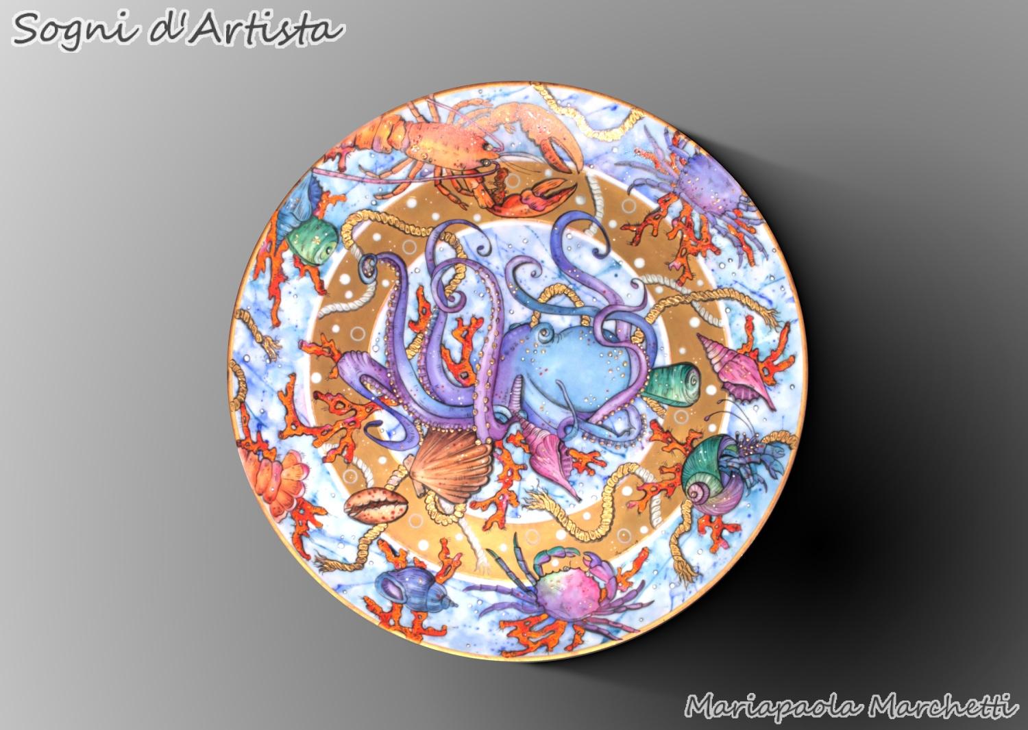 This is Mariapaola's masterpiece. The work shows a musical instrument that goes in a spiral along a big vase. The instrument is decorated with many sea-related images (seashells, mermaids, and so on). This work symbolizes the link between music and the sea.